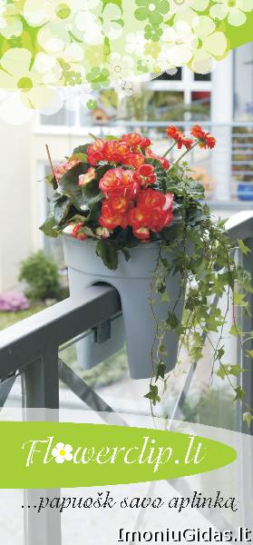 Veiklos sritys: Veiklos aprašymas: PAPUOŠK SAVO APLINKĄ! Flowerclip.lt - išskirtinio dizaino sodo prekių parduotuvė. Sodo prekės: suoliukai, pergolės, vazonai, ažūrinės sienelės su vazonais, modulinės tvorelės, komposto dėžės, malkų dėžės. Visos prekės yra pagamintos iš kokybiško UV spinduliams bei šalčiui atsparios plastmasės. Šiuo metu visoms sodo prekėms taikoma nuolaida iki 40%! | |||||||||||||||