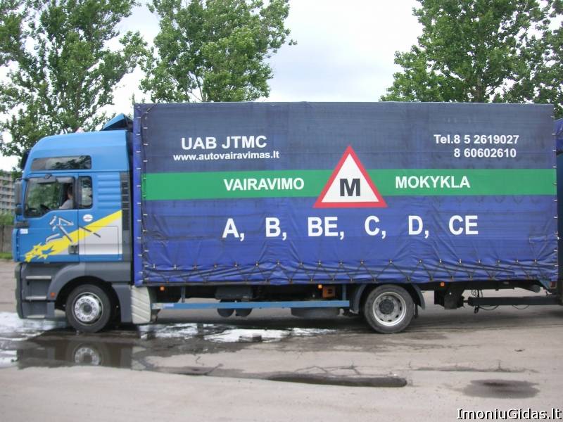 Veiklos sritys: Veiklos aprašymas: UAB "JTMC" - Vairavimo mokykla Vilniuje, įsteigta 1991m., yra viena iš didžiausių šiame mieste. Esame Lietuvos vairuotojų mokymo ir kvalifikacijos kėlimo asociacijos steigėja - narė. Kiekvienais metais parengiame daugiau nei tūkstantį būsimųjų vairuotojų. Vairavimo kursai Vilniuje rengiami "A1", "A2","A", "B","BE","C" "D" "CE" kategorijų kelių transporto priemonių vairuotojams. Mūsų mokykloje dirba profesionalūs ir atestuoti teorijos dėstytojai ir vairavimo instruktoriai. Praktinio vairavimo pamokos vyksta Jums patogiu laiku. Teikiame papildomo vairavimo pamokas. Nuomojamas A kategorijos motociklas VĮ Regitros egzaminui. Mokome automobiliais su mechaninė ir automatine pavarų dėže. PAPILDOMAS VAIRUOTOJŲ MOKYMAS TEISĖMS SUSIGRĄŽINTI Mokymo vieta: Verkių g.43 Vilnius (Žirmūnai) Reikalinga išankstinė registracija. Tel. 8 5 2619027 860602610 Mus rasite: N.Vilnia, Linksmoji g. 73 Tel.: 8 606 02614; El-paštas: uabjtmc@gmail.com Svetainė: www.autovairavimas.lt | |||||||||||||