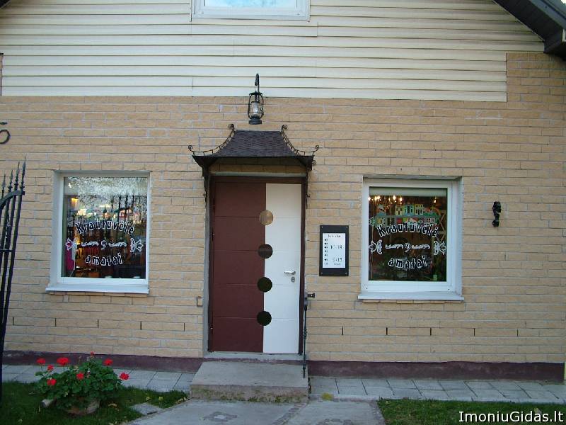 Veiklos aprašymas: Krautuvėlėje 9 amatai parduodami išskirtinai Lietuvos amatininkų ir menininkų gaminiai.Čia rasite įvairių širdžiai mielų smulkmenų, kalvystės gaminių, keramikos dirbinių, odos dirbinių, suvenyrų, tekstilės, veltinio, drožybos, tapybos darbų iš visos Lietuvos meistrų ir kūrėjų. Turime stendą kalviškų gaminių pavyzdžių:vartų,tvorų,memorialinių kryžių viršūnių.Krautuvėlėje galite įsigyti kalviškų vinių,kabyklų,kabliukų, šašlykinių,staliukų. Priimame užsakymus kalvystės gaminiams. | |||||||||||||||