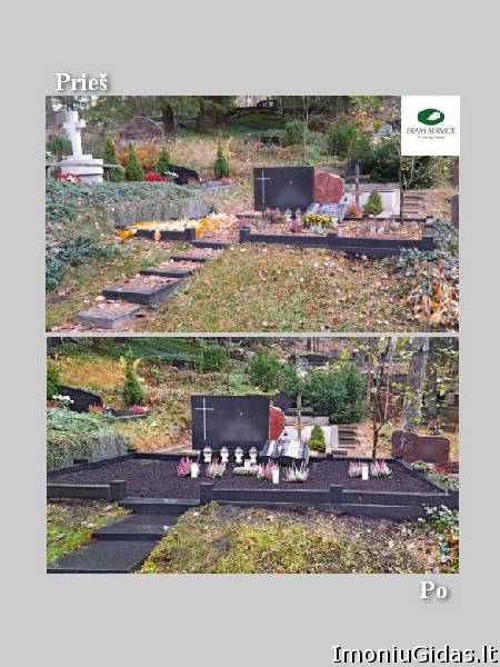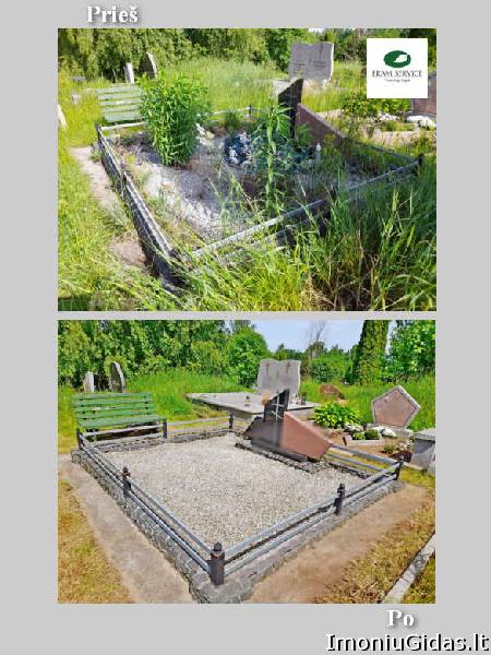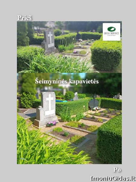 Veiklos sritys: Veiklos aprašymas: Eram service teikia: Nuo vienkartines kapaviečių tvarkymo iki sezoninės kapų priežiūros paslaugų (esamų gėlių laistymas ir sudžiūvusių gėlių išmetimas, drėgnas paminklo akmens ar akmens bortelių valymas, senų žvakių ir žvakidžių surinkimas, kapavietės nuotraukos prieš ir po sutvarkymo, mišių užsakymas). Apleistų kapų sutvarkymas Kapų apželdinimo paslaugas. Pristatymo paslauga visus metus: žvakės uždegimo, vainiko pristatymo, gėlių pamerkimo ar vazonėlio padėjimo. | |||||||||||||