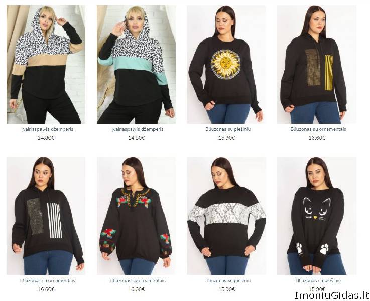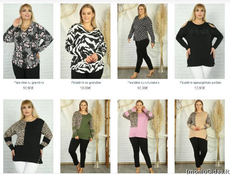 Veiklos sritys: Veiklos aprašymas: Didelių dydžių parduotuvė MOTERIMS. Dydžiai nuo 42 iki 62 (11XL) Prekės sandėlyje, išsiųsime iškart gavę apmokėjimą. Nemokamas pristatymas - užsakymams virš 50 Eur. Kokybiški rūbai už gerą kainą. | |||||||||||||