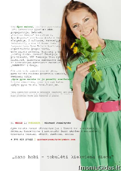Veiklos aprašymas: AMBERVITA - pirmoji sąmoningos mitybos ir harmoningos gyvensenos mokykla. KAIP GIMĖ AMBERVITA?: ♥ „iš noro jaustis nuolat puikiai“, ♥ „iš ilgamečių patirčių ir skirtingų eksperimentų“, ♥ „iš noro dalintis atradimais ir daryti žmones laimingus, nes LAIMĖ – sąmoningas pasirinkimas, prisimena Gintarė Jonaitytė, AMBERVITA įkūrėja ir augalinės kilmės mitybos specialistė (JAV, mokslininko T.C.Campbell studijų centras)“ AMBERVITA mokykla – tai praktikos ir produktai, kurie žadina ŽMOGAUS SĄMONINGUMĄ GYVENIME: ♥ – augalinės kilmės mityba=sąmoninga mityba ⇓ ♥ – sąmoninga mityba=sveikos mintys ⇓ ♥ – sveikos mintys=natūralūs veiksmai ⇓ ♥ – natūralūs veiksmai=HARMONINGAS GYVENIMAS Visos taikomos praktikos ir produktai AMBERVITA mokykloje yra pagrįsti ir išbandyti pačios Gintarės Jonaitytės ir akredituotų mokslininkų bei praktikų . AMBERVITA – sąmoningas požiūris į gyvenimą! | |||||||||||