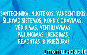Veiklos aprašymas: Santechnika, ventiliacija, vėdinimas, kondicionavimas ir šildymas yra labai svarbūs Jūsų namų jaukumui. Taigi inžineriniai sprendimai, kuriuos atliksime Jūsų name, bute ar kitame objekte nulems kasdieninio gyvenimo kokybę ir komfortą. Todėl leiskite mums pasirūpinti šiais atsakingais darbais, nes įmonė DS Santveko, UAB – tai santechnikos, ventiliavimo, kondicionavimo sistemos, jų įrengimas, remontas ir priežiūra bei garantinis aptarnavimas. Savo klientams siūlome platų paslaugų spektrą – pradedant konsultacijomis, patarimais perkant prekes ir baigiant darbų atlikimu, garantiniu ar pogarantiniu aptarnavimu. Jūsų namų jaukumas – mūsų profesionalių darbuotojų rūpestis! | |||||||||||||||
