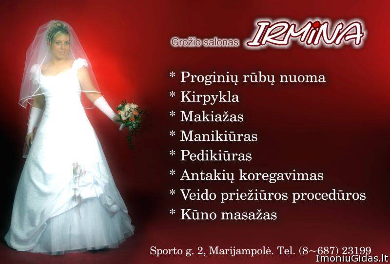 Veiklos sritys: Veiklos aprašymas: Auskarų vėrimas Drabužiai, aksesuarai Kosmetikos pardavimas Kosmetologo paslaugos Makiažas Manikiūras Masažas Pedikiūras Permanentinis makiažas Plaukų priežiūra | |||||||||||||