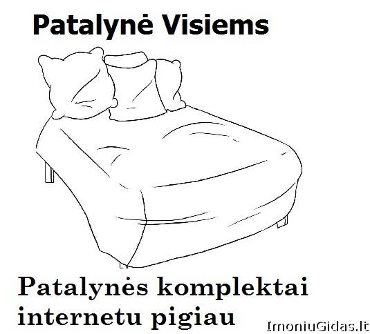 Veiklos sritys: Veiklos aprašymas: Platūs pasirinkimas kokybiškos patalynes iš medvilnės satino už prieinamą kainą. Parduotuvėje rasite įvairių dydžių patalynės komplektus, didžioji dalis prekių pagaminta iš 100% medvilnės. Paklodės su guma, paklodės be gumos, patalynė vaikams, dviguliai ir vienguliai, pusantriniai kelių dalių komplektai. Užsuk ir atrask sprendimą savo ir artimųjų namams - patalynės komplektai internetu www.patalynevisiems.lt | |||||||||