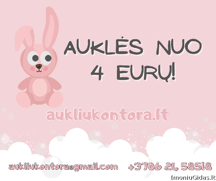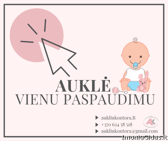 Veiklos sritys: Veiklos aprašymas: Tai išskirtinė vieta, teikianti pagalbą tėveliams vaikų priežiūroje. Auklių kontora atsižvelgia į šeimos poreikius ir skiria geriausiai tinkantį variantą Jų vaikučiams. Auklė gali būti valandinė, ilgalaikė, skubaus iškvietimo bei naktinė. Išskirtinumas – skubus auklės suradimas. Didžioji dalis auklių turi visų amžiaus grupių pagrindus susijusius su vaikų priežiūra (tiek naujagimio, tiek kūdikio, tiek vyresnio amžiaus vaiko). Siekiant Jūsų pasitikėjimo - internetiniame puslapyje pateikiame auklių aprašymus bei patirtis. | |||||||||||||