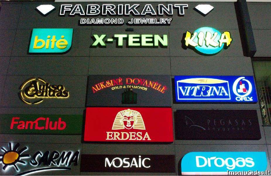 Veiklos sritys: Veiklos aprašymas: Reklamos gamybos įmonė, teikianti visas vizualinės reklamos paslaugas: nuo įprastų iškabų iki kompleksinio fasado apipavidalinimo, nuo lauko reklamos dizaino iki jos montažo. Neoninis apšvietimas, modernios LED apšvietimo technologijos, dienos šviesos efektai - siūlome visa tai ir daug daugiau... | |||||||||||||